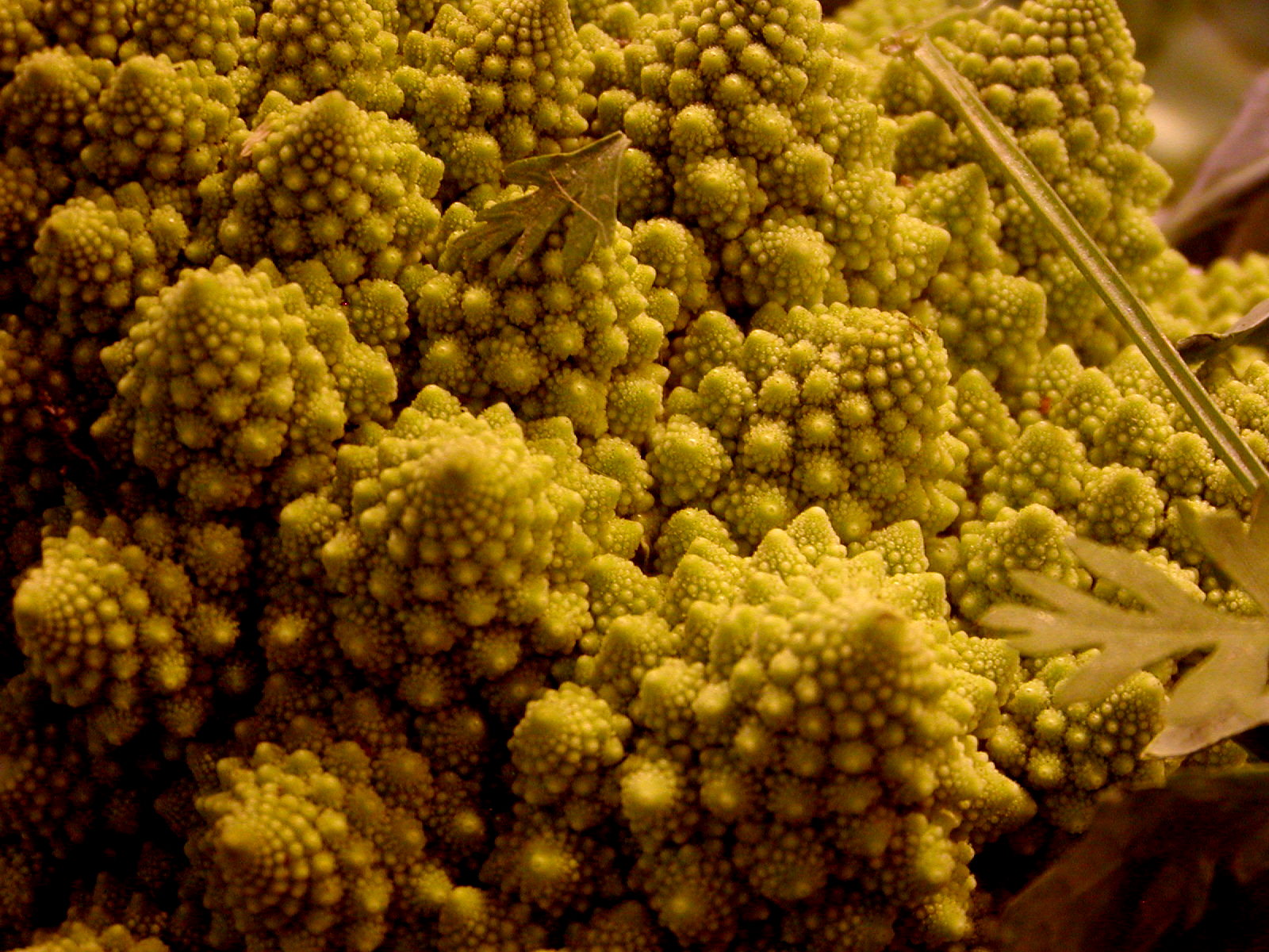 …Auch wenn’s allerorten schon heftig weihnachtet, sondern etwas zum Futtern, nämlich ein Romanesco, eine Blumenkohlart!