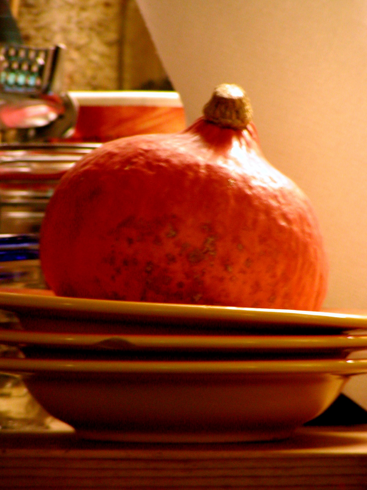 Hokaidokürbis (keinen Großen) das weiche matschige Innere mit den Kernen nicht verwenden. Alles andere samt Schale in kleinere Stücke schneiden zusammen mit drei Mohrrüben (in Scheiben), einer Porrestange, drei größeren Kartoffeln (in Würfeln), einem Stück Ingwer ( nach Geschmack) kleingedchnitten und ein paar Umdrehungen schwarzen Pfeffers, in ein bis anderthalb Liter Gemüsebrühe weich kochen. Dauert im Dampfkochtopf 5-7 Min. Geht aber auch ohne fix. Dann Suppe mittels Pürierstab pürieren. Zum Schluß mit mit einem Stück Butter oder auch Kürbiskernöl verfeinern. Dazu Butterbrote servieren. Das ist kulinarisch perfekt und supereinfach noch dazu!