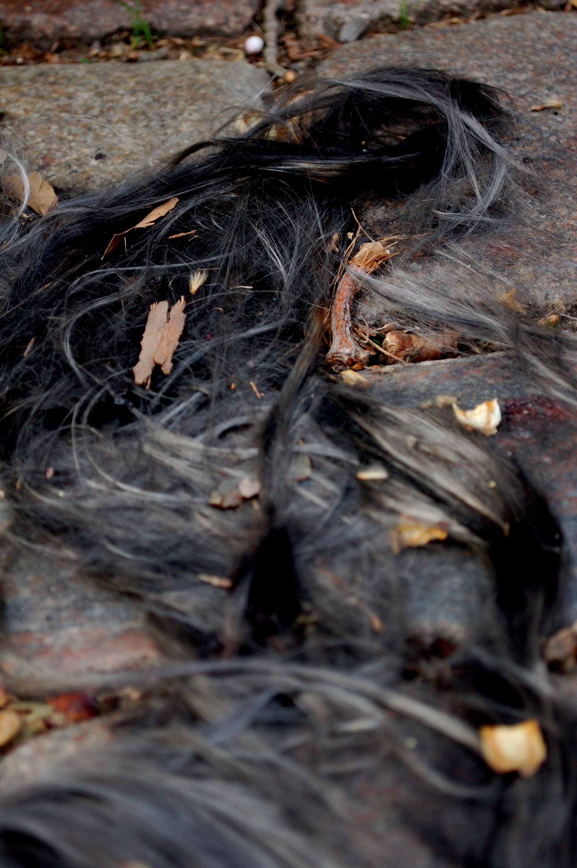 …Ob Tier oder Mensch, es muß eine ziemliche Rauferei gegeben haben! So ganz freiwillig wird derjenige seine Haare wohl kaum hergegeben haben!