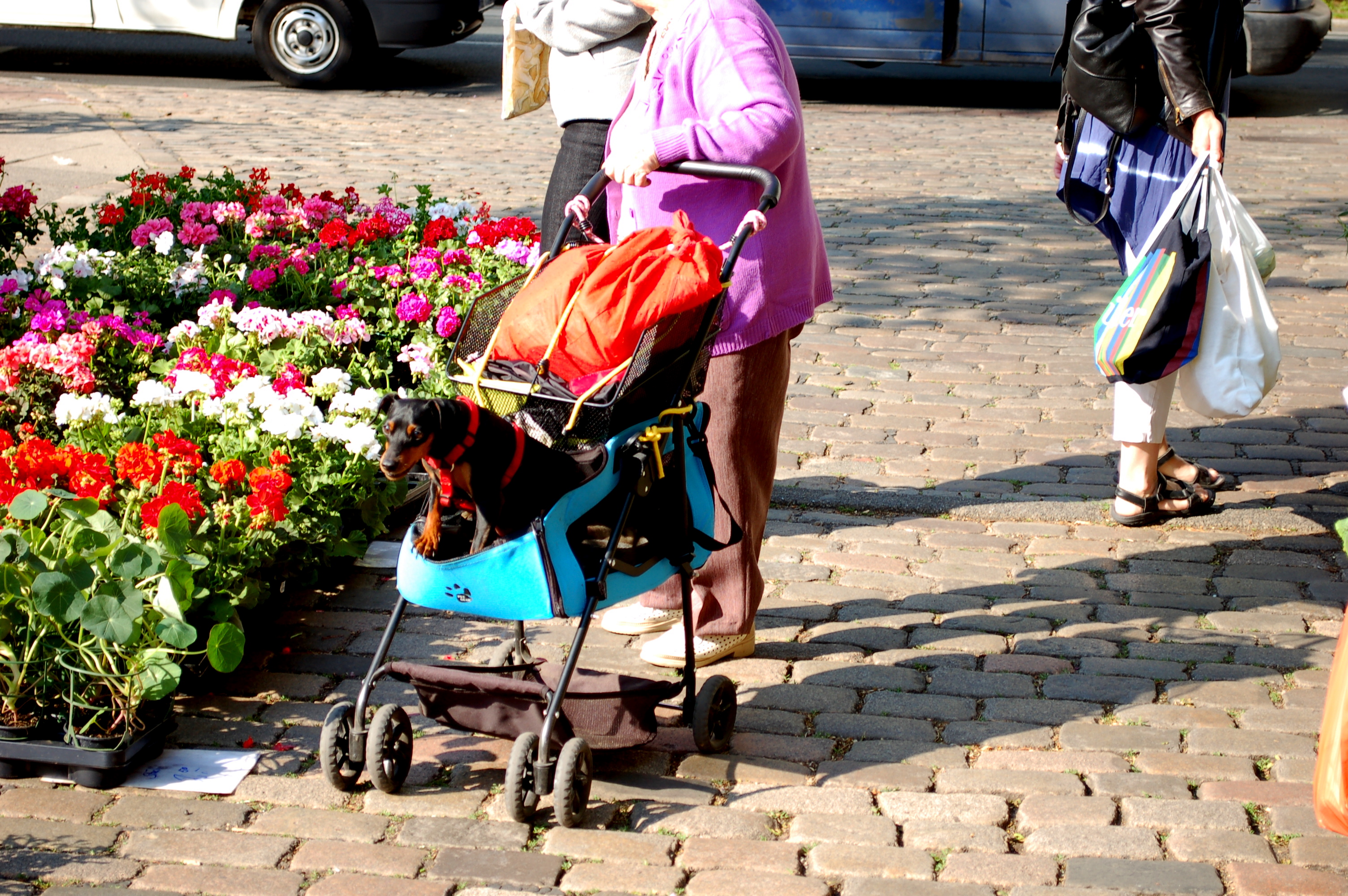 Diese Art der Fortbewegung wäre für Hunde welcher Rasse auf einem Wochenmarkt noch die Beste!