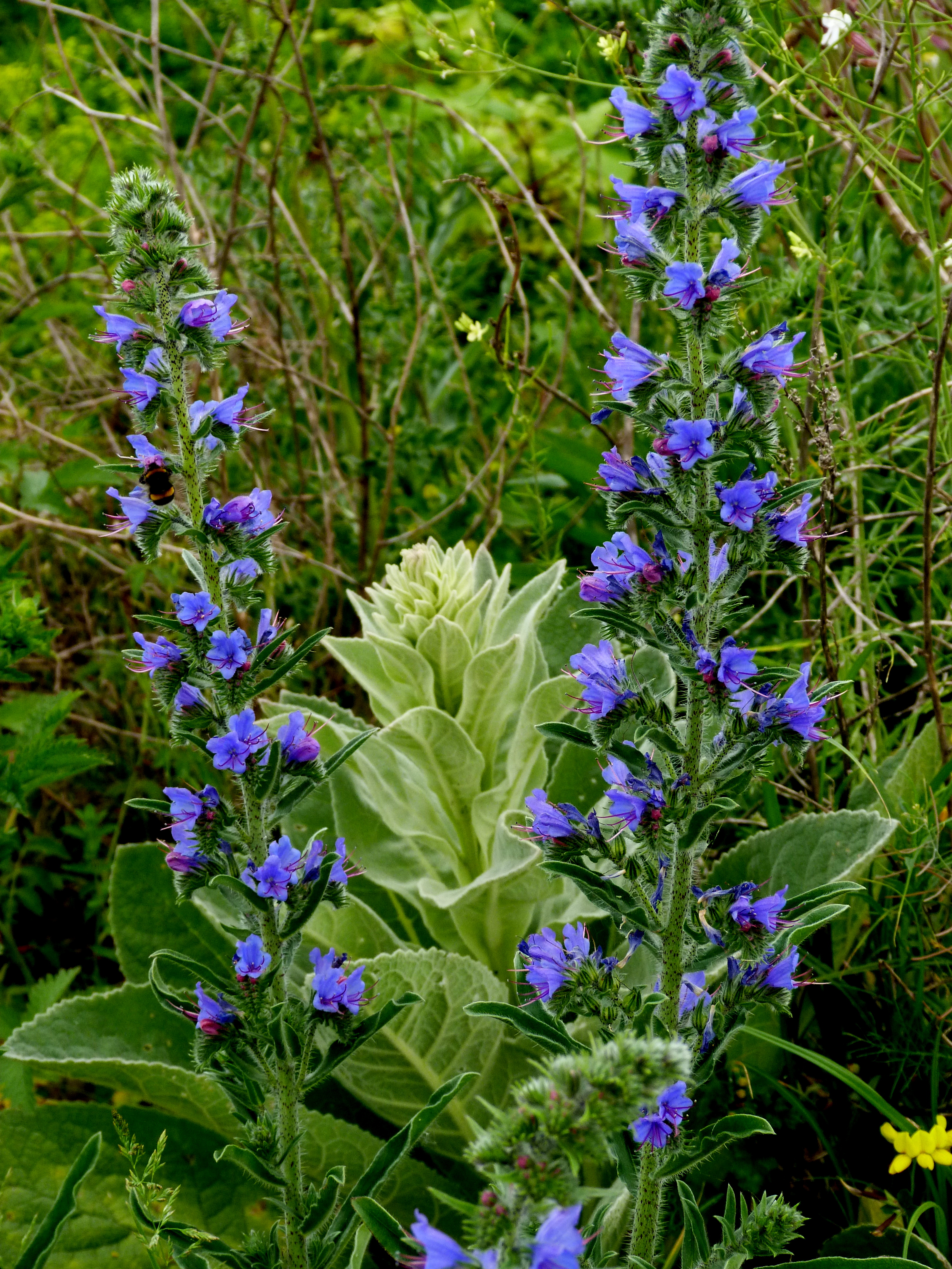 …dies ist nicht Teil eines angelegten Gartens, sondern pure Natur und sie befindet sich nicht irgendwo außerhalb Bremens, sondern mittendrin auf einer sogenannten Brache im Hafenbereich. Auf einem unbebauten Stück ziemlich steiniger Erde haben sich, weil der Mensch es völlig in Ruhe gelassen hat, seltene wunderschöne Pflanzen angesiedelt, die ich nicht glaubte, noch einmal zu Gesicht zu bekommen. Unter anderem Natternkopf und Königskerze. Ein kleines Paradies ist entstanden, weil meine lieben Zeitgenossen ( noch) kein Interesse an dem Stück Erde bekundet haben. Was beweist, dass Natur sich sehr wohl regerieren kann, wenn wir sie denn völlig in Ruhe lassen!