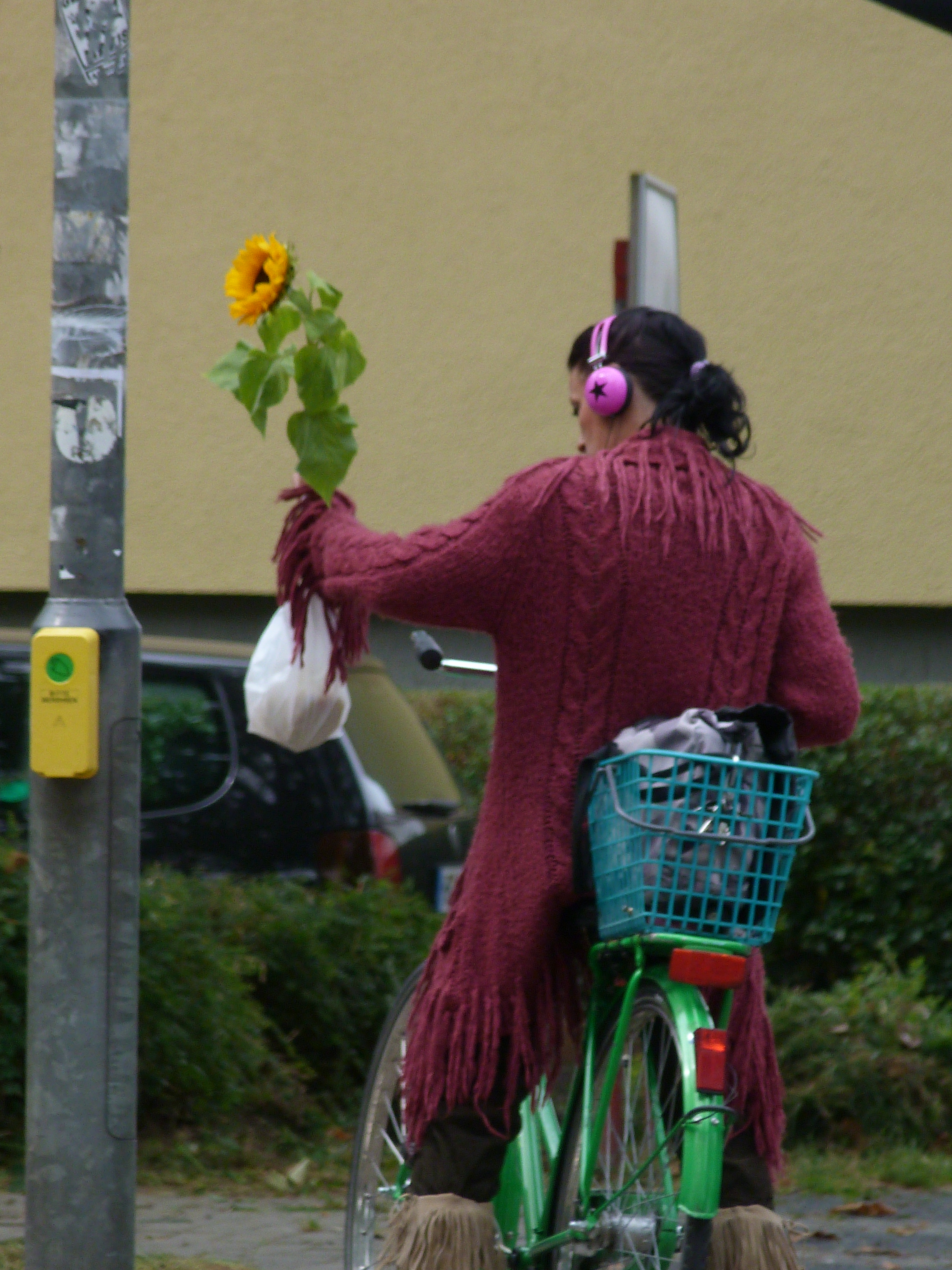 Na, ob die Sonnenblume heil daheim angekommen ist, da hab ich so meine Zweifel. 😉