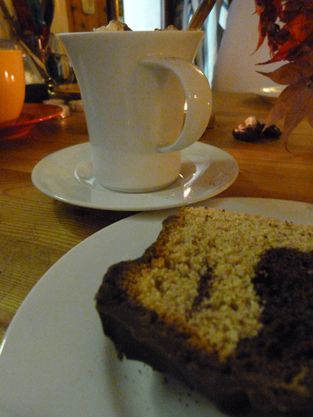 Mehl mit Eiern,Öl, Backpulver, Gewürzen, Zucker in der Küchenmaschine verrühren! Sollte er zu fest sein ein wenig Wasser hinzufügen. Dreiviertel de Teiges in eine vorher mit Öl ausgepinselte Kastenform füllen. Dem restlichen Teig zwei gehäufte Eßlöffel Kakaopulver und ein wenig Wasser zufügen und nochmals in der Küchenmaschine durchrühren, den Schokoteig auf dem hellen Teig verteilen und kurz mit einer Gabel unterheben. Im Backofen bei 200° 50 Minuten backen. Abkühlen lassen und Kuchen mit Schokoglasur überziehen!