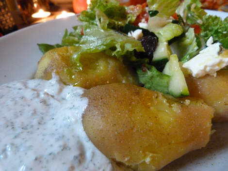 Pellkartoffeln mit Salat und Joghurtkräutersoße…