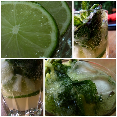 Mojito ohne Rum: ein Mix aus Mineralwasser, Limonenstücken, Gingerale, Pfefferminzblättern und Eiswürfeln!