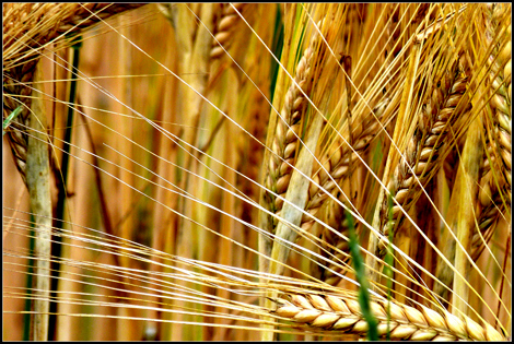 …gibt es Tolleres als reifes Getreide. Abgesehen davon, daß ein Getreidefeld wundervoll duftet und genauso ausschaut, beinhaltet es Brot, Kuchen, Gebäck! Seit über dreißig Jahren mahle ich mir einen Teil meines Weizens, den ich für meinen täglichen Gebrauch benötige, selbst in einer Getreidemühle, die auch schon so viele Jahre auf dem Buckel hat. Es geht eben nichts über frisch gemahlenes Getreide in dem noch alle Vitamine und Spurenelemente vorhanden sind, einfach alles was der menschliche Organismus benötigt, um gesund zu bleiben. Als meine Tochter noch klein war, buk ich aus eben diesem Weizen jeden Tag frische Hefe-Brötchen oder ein Sauerteigbrot aus einem Weizen-Roggen-Gemisch! Das ist mir zwar heute etwas zu anstengend aber gelegendlich ein Korianderquarkbrot backe ich schon noch und selbstverständlich sind alle meine Kuchen ob süß oder mit Gemüse gefüllt aus selbstgemahlenem Weizenmehl!