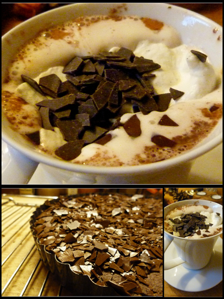 Und dann zum Dessert: Schokoladen-Amaretto-Kuchen mit heißer Schokolade