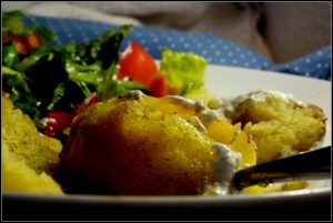 Fleischlos glücklich: Pellkartoffeln mit selbstgemachtem Tsatsiki und mediteranem Salat