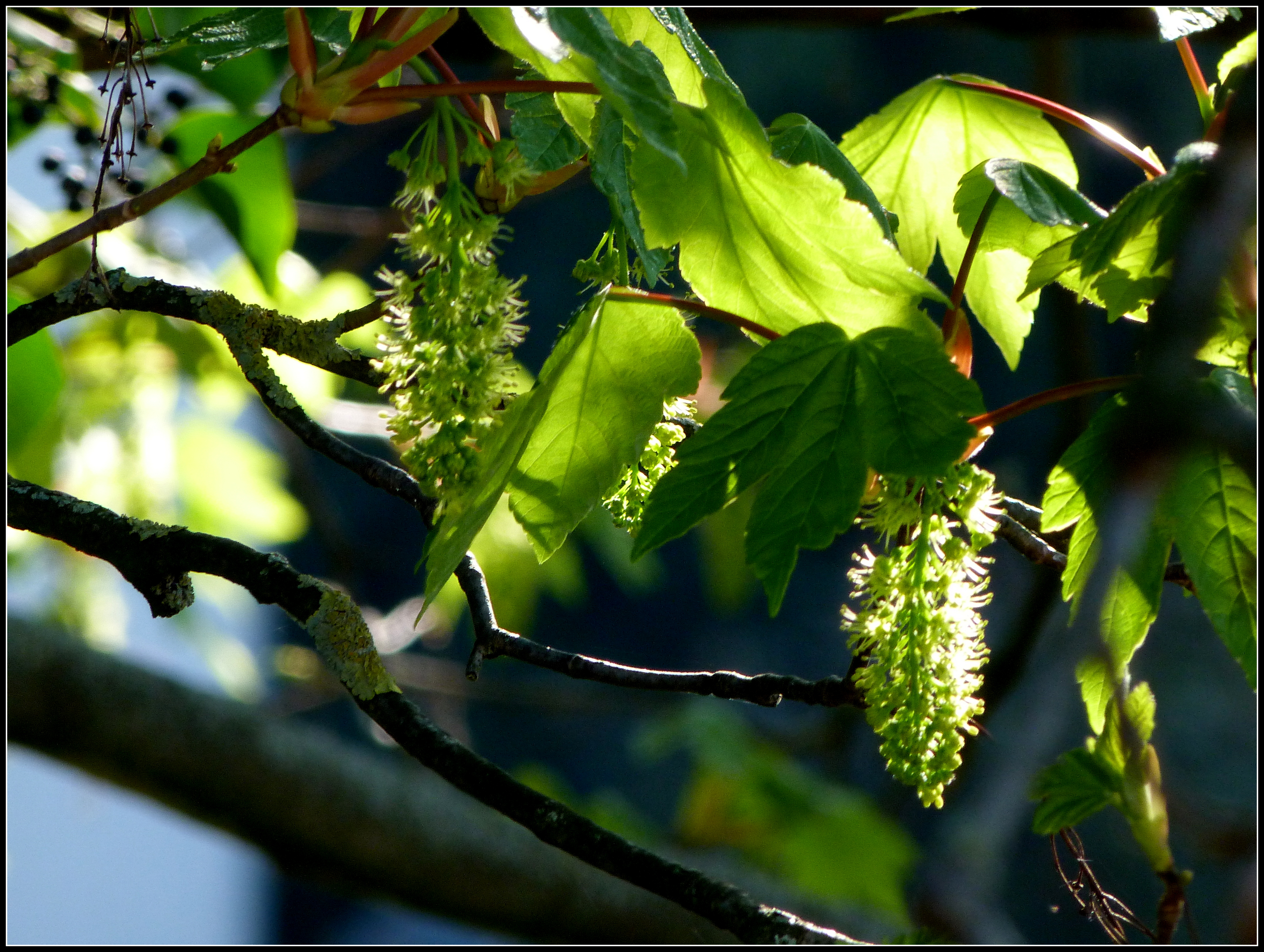 Unsere drei Ahörner stehen in voller Blüte und dies lieben nicht nur Bienen, sondern alle Insekten und sämtliche insektenfressenden Gartenvögel, denn alles hängt in der Natur mit allem zusammen…..