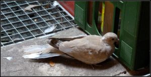 Wir beschlossen sie ins Tierheim zu bringen, setzten sie in einen unserer afrikanischen Einkaufskörbe und fuhren los, Meine Tochter sprach beruhigend auf sie ein, während der Fahrt. Ich war skeptisch, was das Tierheim betraf und sollte Recht behalten. Warum wir die Taube nicht zum Tierarzt brächten, wurden wir prompt gefragt, hätten wir alles schon einmal mit einem verletzten Mauersegler vor Jahren durchgemacht. Der Tierarzt hatte den Vogel untersucht, nichts gefunden und uns mit ihm nach Hause geschickt. Eine Woche später starb er, obwohl wir ihn mit Essen ( Mehlwürmern) und Wasser versorgt hatten. Das wollten wir kein zweites Mahl erleben, Man schaute uns befremdlich und abweisend an. Wir sollten einen Moment warten, jemand würde sich gleich die Taube anschauen. Inzwischen wurden unsere Personalien aufgenommen. Was wir denn mit anderen verletzten Wildtieren tun sollten, fragten wir? Auf keinen Fall mitnehmen und zu ihnen bringen, war die entsetzte Antwort. Na ja, das war also auch klar! Tiere liegen und einfach verrecken lassen. Eine Kollegin schaute sich inzwischen unsere Taube an, indem sie sie an eins ihrer Ohren hielt und meinte, das Tier hätte Lungenprobleme. In den nächsten Tagen käme ein Tierarzt und würde sie untersuchen, wir könnten uns demnächst nach dem Befinden der Patientin telefonisch erkundigen, sprachs und steckte die Taube in einen winzigen Käfig. Na, schaun wir mal, was draus wird !!!!!!!