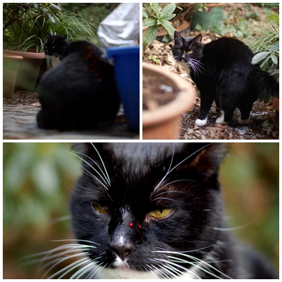 …meist sind sie unsichtbar füreinander, doch diesmal sah Bisi seinen Katzenbruder doch, als dieser sich anschickte von uns eingelassen zu werden!