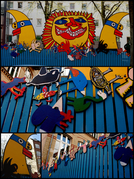 Hoffentlich geht’s im Kindergarten im Hamburger Schanzenviertel so lustig zu, wie’s der Eingang uns suggerieren möchte…