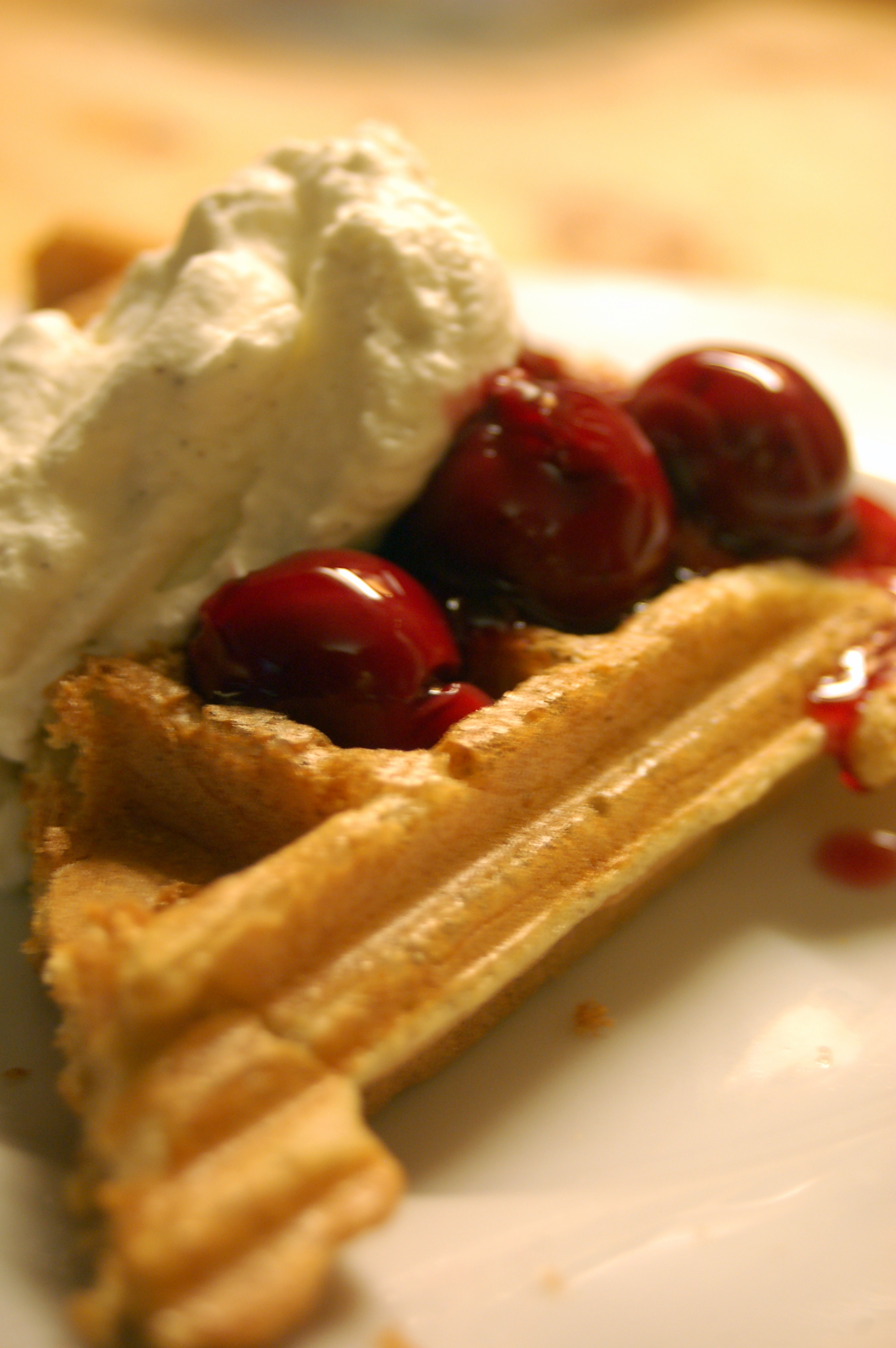 Herausgekommen ist dies, Zimtwaffeln mit sauren Kirschen…