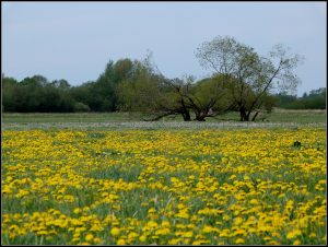 Die Wiesen sind momentan wundervoll gelb vom Löwenzahn! Wie wir gelernt haben, ist er wichtig für Bienen & Co. Da er zu den Tiefwurzlern gehört, ist er zum Glück auch nicht so leicht auszurotten. Mähen macht ihm nix aus, so wie den Flachwurzlern, beispielsweise Mohn…..