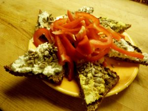 Sonnenblumen sehen nicht nur fantastisch aus, sie liefern uns nicht nur Öl sondern auch sehr schmackhafte und gesunde Kerne die vielseitig verwendbar sind. Vollkornbrotscheiben mit Hüttenkäse oder einfach nur mit Butter bestrichen und bestreut mit Sonnenblumenkernen dazu in Scheiben geschnittene Paprikaschoten. Wer kann da noch widerstehen…..